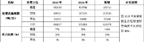 表1中國城市生活垃圾無害化處理“十二五”規(guī)劃情況