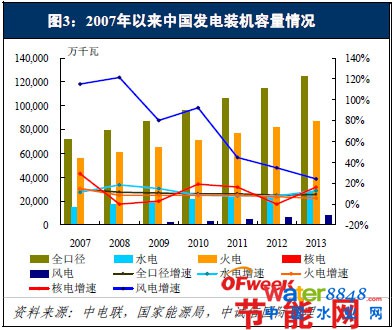風(fēng)電是近年來(lái)發(fā)展最快的新能,風(fēng)電所發(fā)電量占所有電源發(fā)電量的比重自2008年的低于0.5%逐年增長(zhǎng)至2012年的2.00%左右,2013年進(jìn)一步增長(zhǎng)至2.5%以上。
