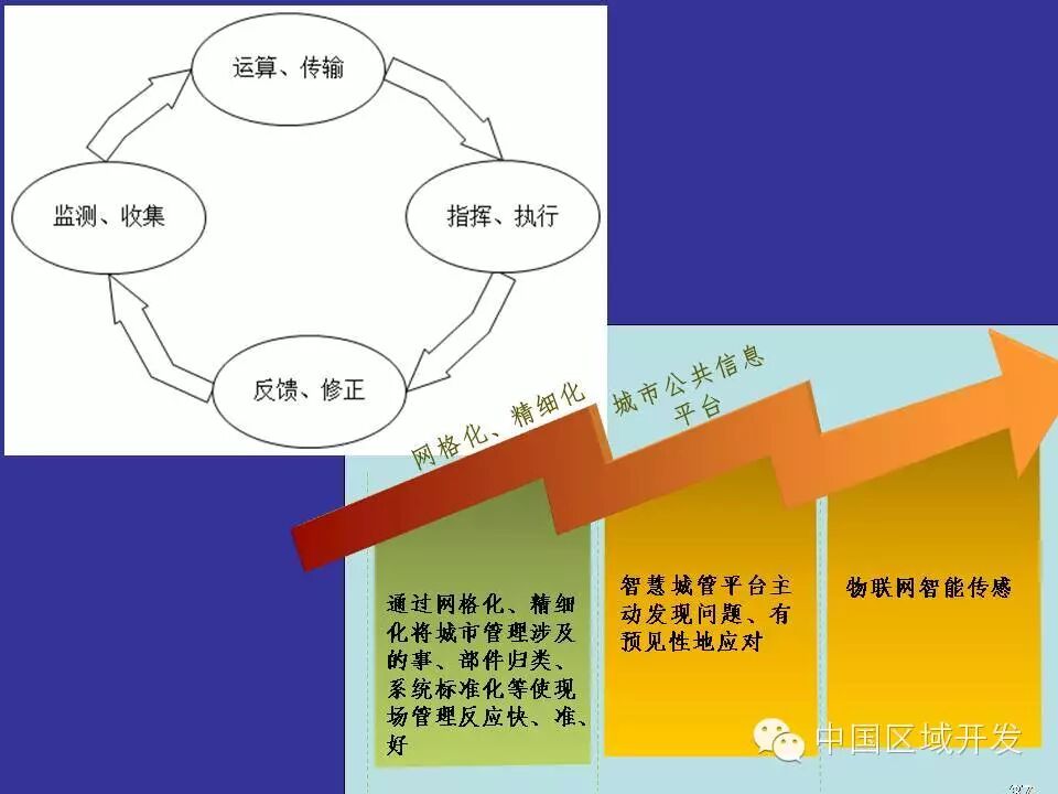 智慧的海綿城市是逐步推進(jìn)的(見圖10。比如,通過網(wǎng)格化、精細(xì)化設(shè)計(jì)將城市管理涉及的事、部件歸類,系統(tǒng)標(biāo)準(zhǔn)化等使現(xiàn)場(chǎng)管理反應(yīng)快、準(zhǔn)、好。在此基礎(chǔ)上,再推行城市公共信息平臺(tái)建設(shè),通過智慧城管平臺(tái),主動(dòng)發(fā)現(xiàn)問題,并有預(yù)見性地應(yīng)對(duì)。最后,通過物聯(lián)網(wǎng)智能傳感系統(tǒng),實(shí)現(xiàn)實(shí)時(shí)監(jiān)測(cè)。通過以上這些優(yōu)化設(shè)計(jì),可以使我國(guó)城市迅速地、智慧地、彈性地來應(yīng)對(duì)水問題。智慧的海綿城市離不開這樣一個(gè)循環(huán):信息的監(jiān)測(cè)收集→信息的傳輸→準(zhǔn)確地指揮→迅速地執(zhí)行→對(duì)結(jié)果進(jìn)行反饋修正。這樣一種信息的循環(huán)利用模式,可以使海綿城市能夠非常高效和智慧地運(yùn)行。