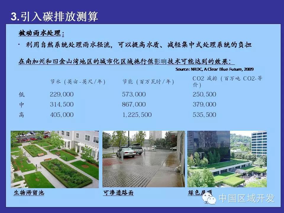 我國(guó)是世界上最大的碳排放國(guó),國(guó)務(wù)院已決定建立中國(guó)特色的碳交易市場(chǎng),在我國(guó)內(nèi)部首先實(shí)現(xiàn)公平的碳排放權(quán)交易。海綿城市建設(shè)能夠在很大程度上減少碳排放,因?yàn)槲覀儌鹘y(tǒng)的外地調(diào)水特別是長(zhǎng)距離供水需消耗大量的能源資源,屬高碳排放的工程。美國(guó)南加州和舊金山灣地區(qū)的城市化區(qū)域通過實(shí)施低影響開發(fā)技術(shù),碳減排效果十分顯著,見表2NRDC, A ClearBlue Future, 2009),按照碳減排的程度分成低中高三個(gè)級(jí)別,可以看到,高影響條件下,每年的碳減排量非常巨大。如果把海綿城市建設(shè)模式引發(fā)碳減排拿到碳交易市場(chǎng)上進(jìn)行交易,變成現(xiàn)金,則可以有效減少項(xiàng)目的投資,形成穩(wěn)定持久的投資回報(bào)。
