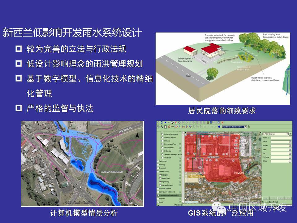 此外,建筑智慧化方面,可以通過公共建筑水耗在線監(jiān)測(cè),顯示公共建筑水耗、能耗的排名情況。根據(jù)試點(diǎn)城市調(diào)查,建筑單位面積水耗最高和和最低相差十倍之多,有的建筑由于設(shè)計(jì)和運(yùn)維問題,水管出現(xiàn)了嚴(yán)重的漏損,這些缺陷都可以通過公共建筑水耗在線監(jiān)測(cè)系統(tǒng)診斷出來。將水耗情況在媒體進(jìn)行公開排名,有助于建筑管理和產(chǎn)權(quán)單位清楚的認(rèn)識(shí)水耗情況,主管部門可以要求對(duì)水耗最高的建筑進(jìn)行強(qiáng)制性改造,明確控制性指標(biāo)性和針對(duì)性措施,從而推動(dòng)整個(gè)城市的水循環(huán)利用和用水效率得到提升。在這方面,新西蘭和澳大利亞做得非常好,低影響雨水設(shè)計(jì)系統(tǒng)通過數(shù)字模型和信息化技術(shù)的精細(xì)化管理,能夠把GIS、云計(jì)算這些技術(shù)落實(shí)到位,并將其作為一種手段,使海綿城市智慧起來,見圖9。