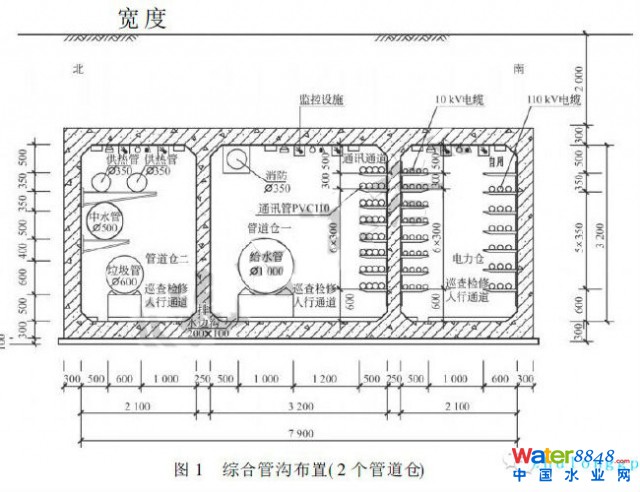 綜合管溝又稱共同溝或市政綜合管廊,具有統(tǒng)一建設(shè)、節(jié)約空間的優(yōu)勢(shì)。珠海橫琴開(kāi)發(fā)區(qū)綜合管溝,全長(zhǎng)20.9千米,投資17億元,地處填海軟弱土層,設(shè)計(jì)施工難度大,是我國(guó)現(xiàn)代化大型綜合管溝的典型工程。該綜合管溝采用矩形三倉(cāng)斷面,納入給水管、中水管、220千伏高壓電纜、供熱管、垃圾真空管、弱電線纜。其設(shè)計(jì)經(jīng)驗(yàn)有較大的參考價(jià)值。