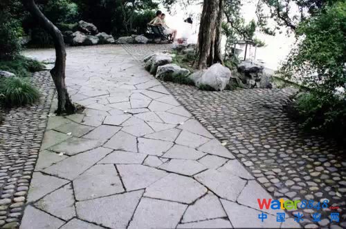 因景觀和功能要求,在主要道路和廣場上未使用透水磚。因道路廣場的標高大于綠地標,道路廣場上的雨水可以匯聚到周邊綠地內(nèi),再滲透到地下。而園內(nèi)一般道路采用透水磚,并以級配砂石作為墊層,在級配砂石墊層內(nèi)鋪設全透型排水軟管,便于雨水滲透、收集和利用。
