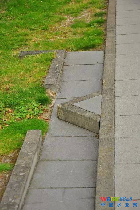 結(jié)合景觀水景要求設計人工湖,包括初級凈化池、次級凈化池、清水池。雨水利用時主要從清水池用泵抽取,供附近的沖廁用水以及補充山地綠化灌溉用水;少量溢出的雨水排入市政雨水管。湖水的常水位標高比溢流口低10cm,而駁岸的標高則根據(jù)常水位來設計這樣處理可以使降雨蓄存量增加,保證至少單次降雨量在50mm以下時不會產(chǎn)生溢流,既保持了平時湖水充盈的親水效果,又為雨季蓄水打下了基礎。在人工湖設計有若干水生植物種植池,這些種植池在豐富湖區(qū)景觀的同時,也承擔著沉積雨水帶來的泥沙的作用。為保證湖水清潔,防止水質(zhì)惡化,中水處理系統(tǒng)對湖水進行循環(huán)處理,同時為公園里其它綠地噴灌系統(tǒng)提供水源,使得匯集的雨水得以充分利用。