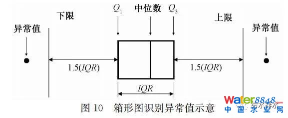 箱形圖是識別數(shù)據(jù)中異常值的常用方法,其繪制依靠實際數(shù)據(jù),不需要事先假定數(shù)據(jù)服從特定的分布形式,識別異常值的結(jié)果比較客觀。如圖10所示,箱型圖中包含5個統(tǒng)計量:最小值、第一四分位數(shù)Q1、中位數(shù)、第三四分位數(shù)Q3與最大值,異常值被定義為小于(Q1-1.5IQR)或大于(Q3+1.5IQR)的值,其中IQR=Q3 - Q1。