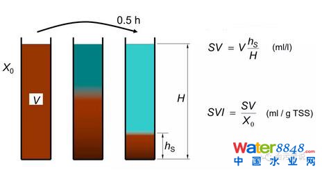 活性污泥的系統(tǒng)是一個(gè)由生物池和二次沉淀池共同組成的系統(tǒng)(MBR工藝通過(guò)膜分離技術(shù)替代了沉淀池的泥水分離作用),二次沉淀池良好的泥水分離是活性污泥法運(yùn)行好壞的關(guān)鍵;钚晕勰嗤ㄟ^(guò)生物池的曝氣處理后,流入到二沉池內(nèi),在二沉池內(nèi)靜沉沉淀,SV30基本可以代表這個(gè)靜沉沉淀的過(guò)程。二沉池的沉淀時(shí)間往往在2個(gè)小時(shí)左右,SV30用半小時(shí)的時(shí)間來(lái)代替2小時(shí)的沉淀,是因?yàn)镾V30是在一個(gè)靜止的環(huán)境中進(jìn)行的檢測(cè),而二沉池的2小時(shí)沉淀是一個(gè)連續(xù)進(jìn)水連續(xù)出水的環(huán)境,2小時(shí)的連續(xù)進(jìn)出水的沉淀效果和靜止?fàn)顟B(tài)下的30分鐘的效果接近。因此SV30是能夠反應(yīng)出二沉池內(nèi)的泥位高低的一個(gè)指標(biāo)。