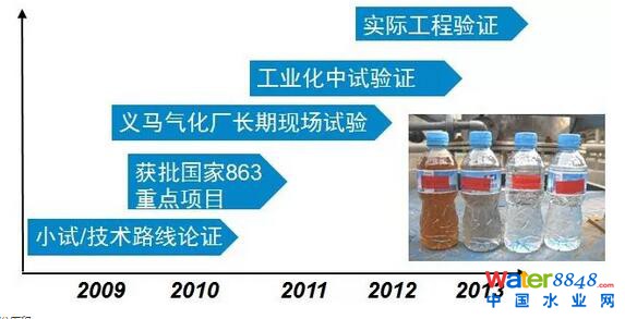 2009年是我國煤制天然氣等新型煤化工快速發(fā)展的開局之年,廢水處理與回用問題成為當(dāng)時影響項目審批和運行的關(guān)鍵。研究團隊成立之初就有明確的產(chǎn)業(yè)化目標,即攻克煤氣化廢水處理難關(guān),為2012年首個項目的投標和設(shè)計建設(shè)提供技術(shù)支撐。因此以目標項目進行倒逼,倒排工期,技術(shù)開發(fā)產(chǎn)業(yè)化是按照系統(tǒng)工程的思維進行整體統(tǒng)籌的,在各關(guān)鍵時點都配置了大量的資源。
