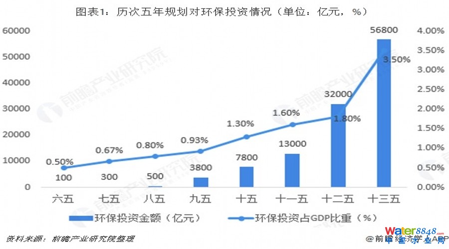 改革開放以來,我國經(jīng)濟快速發(fā)展,綜合國力顯著增強,為持續(xù)發(fā)展,對環(huán)境保護的投入不斷增加。歷年來五年規(guī)劃對環(huán)保投資不斷增加,“九五”期間,我國環(huán)保投入達3600億元,環(huán)保投入占GDP的比例首次超過1%。“十五”期間,環(huán)保投入約占到GDP的1.3%。“十二五”期間,環(huán)保投入的比例進一步增大。環(huán)保投資力度的不斷加大推動我國環(huán)保產(chǎn)業(yè)不斷提升。