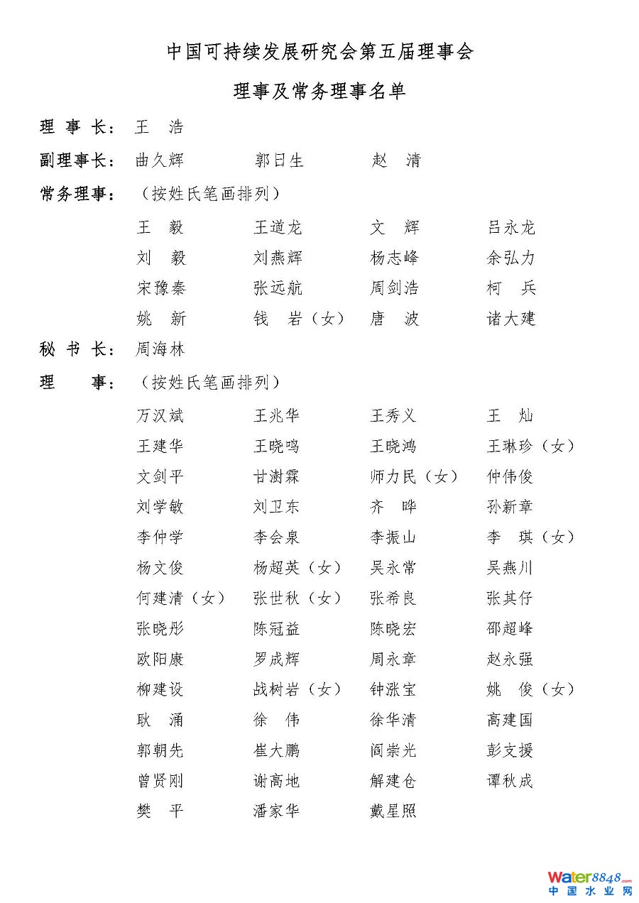 2016年12月21日,中國可持續(xù)發(fā)展研究會在北京科技會堂召開第五屆會員代表大會,選舉產(chǎn)生第五屆理事會以及研究會領(lǐng)導(dǎo)班子。研究會第五屆理事會由76位理事構(gòu)成,其中常務(wù)理事16名。第五屆領(lǐng)導(dǎo)班子由5位成員構(gòu)成:理事長王浩院士;副理事長曲久輝院士;副理事長郭日生巡視員;副理事長趙清總經(jīng)理;秘書長周海林研究員。