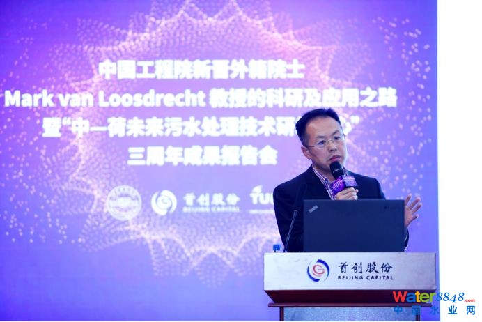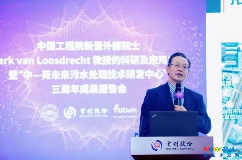 2019年11月30日下午,中國工程院新晉外籍院士Mark van Loosdrecht(馬克·梵·洛斯德萊特)教授的科研及應用之路暨“中-荷未來污水處理技術研發(fā)中心”(以下簡稱“中-荷研發(fā)中心”)三周年成果報告會在北京舉行。荷蘭代爾夫特理工大學教授馬克·梵·洛斯德萊特,中國城鎮(zhèn)供水排水協(xié)會會長、秘書長章林偉,北京建筑大學校長張愛林,副校長張大玉,中國市政華北院總經理吳凡松,首創(chuàng)集團副總經理、首創(chuàng)股份董事長劉永政,首創(chuàng)股份總經理楊斌,副總經理江瀚,北京建筑大學環(huán)能工程學院教授郝曉地、北京“未來城市設計高精尖中心”主任李雪華等出席并發(fā)表演講。