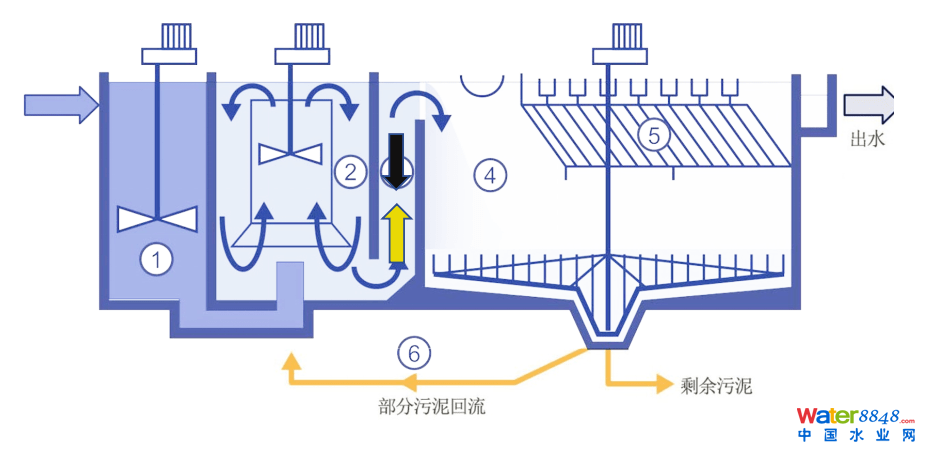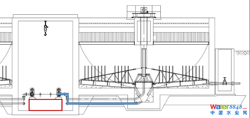 因?yàn)榇欧鄣谋戎剌^大,傳統(tǒng)高效沉淀池的攪拌系統(tǒng)不足以使含有磁粉的絮體在池體中完全混合。通常,傳統(tǒng)高效沉淀池的刮泥機(jī)的力矩也難以有效刮除磁性污泥。
