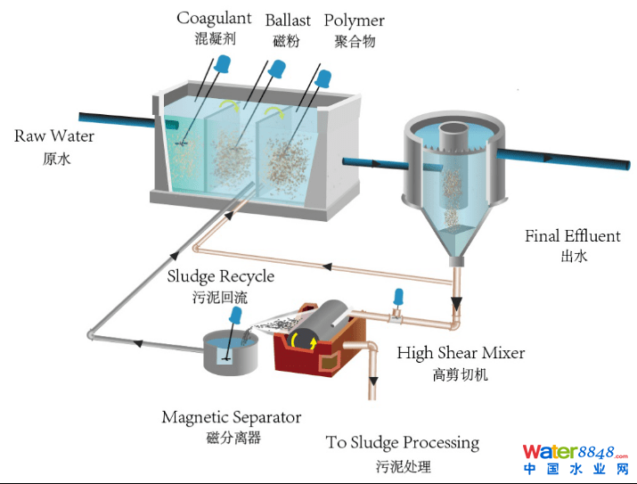 磁分離器和高剪切機(jī)等磁粉回收設(shè)備是磁混凝沉淀系統(tǒng)的核心設(shè)備。可靠的磁分離器是保障磁粉回收率的核心,可有效降低磁粉補(bǔ)充率及運(yùn)行成本。
