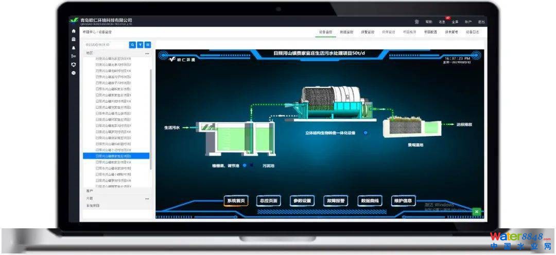 摘要:山東省日照市某鎮(zhèn)域內(nèi)行政村存在生活污水橫流、亂排亂倒現(xiàn)象,污染了周邊水體,影響了農(nóng)村人居生活環(huán)境。為解決此問題,該鎮(zhèn)因地制宜、統(tǒng)籌規(guī)劃,對鎮(zhèn)域內(nèi)23個居住相對集中且污水排放量較高的單村或聯(lián)村,采用青島歐仁環(huán)境科技有限公司的3D-RBC立體結(jié)構(gòu)生物轉(zhuǎn)盤技術(shù)建設(shè)污水處理站進行集中處理。該項目采用專業(yè)化污水處理團隊與國企聯(lián)合運營、智慧水務(wù)云平臺遠程物聯(lián)網(wǎng)運營,實行鎮(zhèn)督導、村落實、運營班組實施的管理運營模式。自2020年10月開始運行至今,3D-RBC立體結(jié)構(gòu)生物轉(zhuǎn)盤技術(shù)處理效果較好,在進水COD、氨氮分別為168.0~387.8、23.1~93.2 mg/L的條件下,出水COD和氨氮分別為16.6~47.5、0.9~4.4 mg/L,達到了《城鎮(zhèn)污水處理廠污染物排放標準》(GB18918—2002)的一級A標準。該項目采用3D-RBC立體結(jié)構(gòu)生物轉(zhuǎn)盤一體化設(shè)備,無需風機曝氣,生化部分噸水占地0.12m2/m3污水,生物轉(zhuǎn)盤噸水電耗為0.12kW·h/m3污水。3D-RBC立體結(jié)構(gòu)生物轉(zhuǎn)盤技術(shù)具有占地面積小、運行成本低、操作簡便、運行穩(wěn)定的優(yōu)點;采用智慧水務(wù)云平臺運營系統(tǒng),可大大提高運營效率。