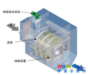 濾布濾池 取代二沉池,生物轉(zhuǎn)盤出水進入濾池后,在壓差的作用下,通過微孔濾布進入濾盤,固體懸浮物被截留在濾布外側(cè),濾液通過濾盤向出水管匯集并經(jīng)出水口排出濾池。 |