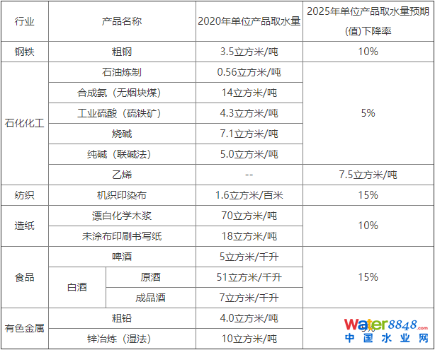 表 重點行業(yè)主要產(chǎn)品水效提升預期目標