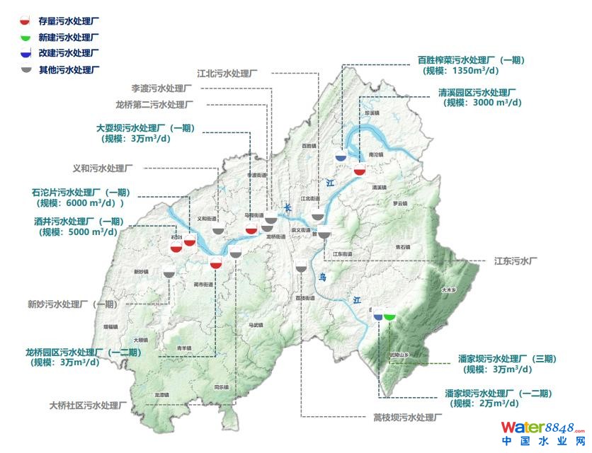 該項目由重慶公司與長江環(huán)保上游公司聯(lián)合中標(biāo),重慶公司承擔(dān)施工份額13.61億元,主要包含“四區(qū)五類”,既新城區(qū)“廠網(wǎng)河湖岸”一體綜合治理示范區(qū)、臨港經(jīng)濟(jì)區(qū)“廠網(wǎng)一體”改造提升區(qū)、清溪園區(qū)“廠網(wǎng)一體”改造提升工程區(qū)、白濤潘家壩污水處理廠區(qū)。