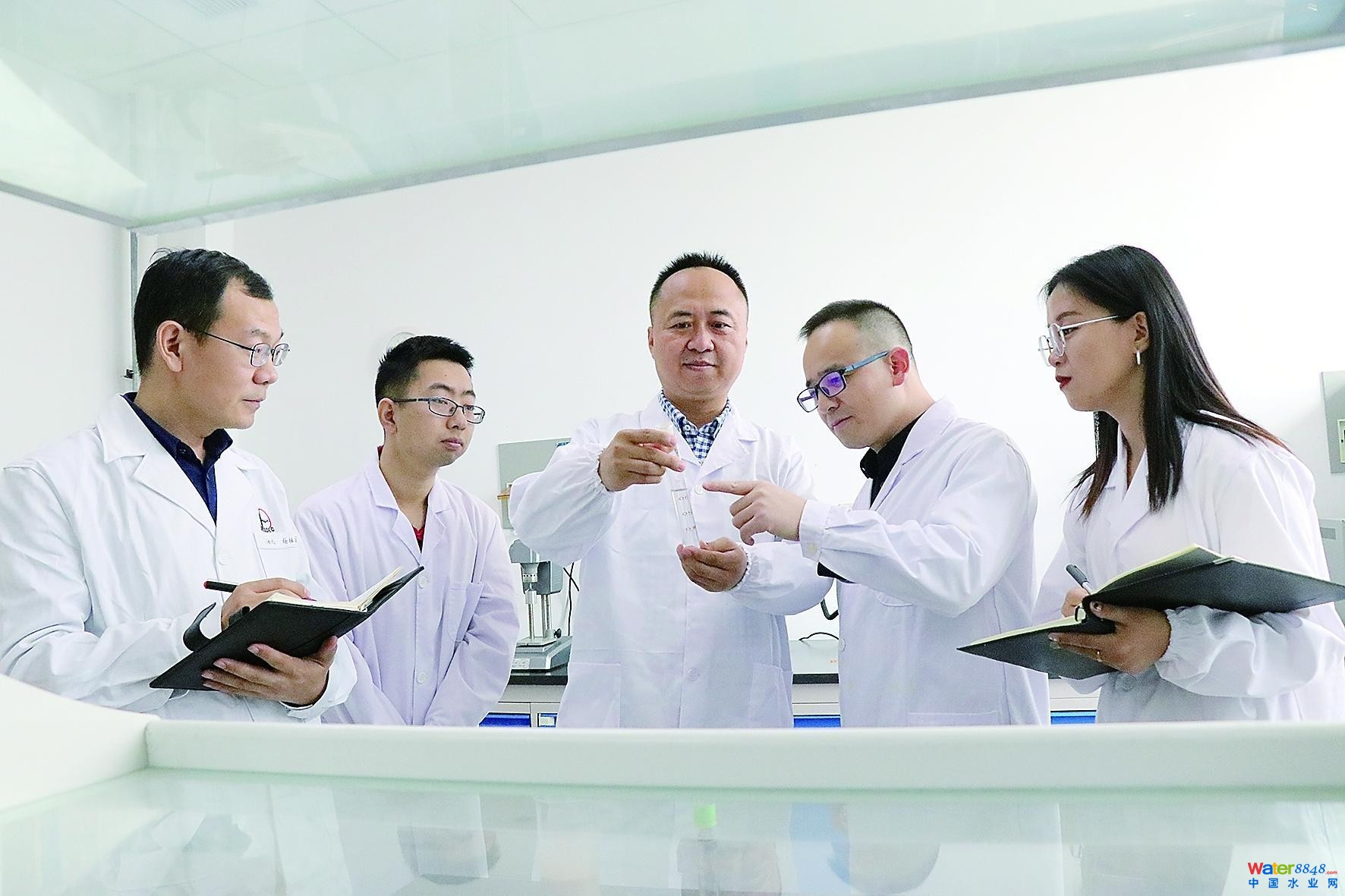 何龍創(chuàng)新工作室團隊分析液相調(diào)流劑。魏 玲 攝