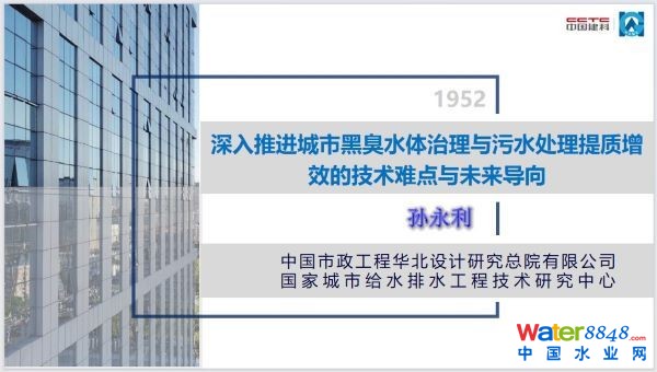 孫永利院長做題目為“深入推進城市黑臭水體治理與污水處理提質增效的技術難點與未來導向”的學術報告,報告線上線下同時進行。孫永利院長從水環(huán)境治理行業(yè)背景和行業(yè)發(fā)展需求為切入點,指出目前已經進入了水環(huán)境高質量發(fā)展階段;圍繞“源-網-口-廠-河”系統(tǒng)地介紹污水處理體質增效、污水處理與資源化、城市黑臭水體治理的技術難點,并提出需求導向的未來技術發(fā)展重點。