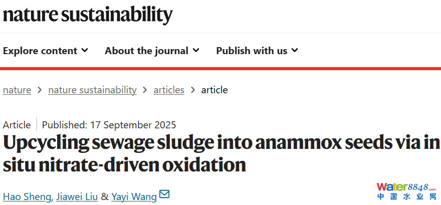 環(huán)境科學與工程學院王亞宜團隊在《自然·可持續(xù)發(fā)展》上發(fā)表基于硝酸鹽驅(qū)動的原位氧化策略將污泥升級為厭氧氨氧化種泥